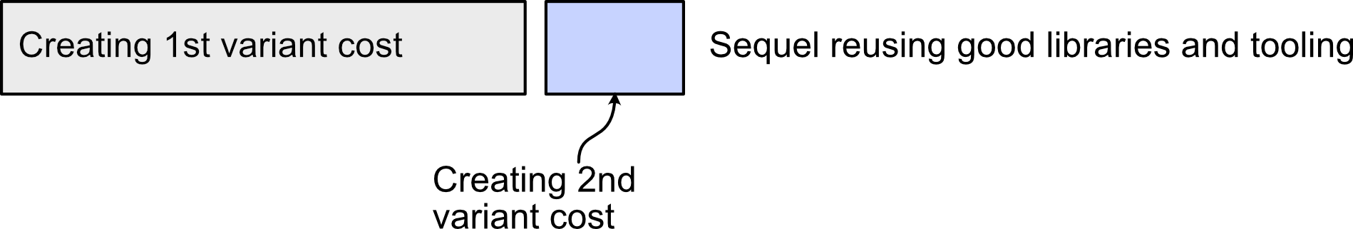 You could produce an entirely new product from scratch, but this is just as expensive, and sometimes more expensive, as creating the first product (see Figure 2). Cyan took this approach. It took Cyan 2 years to develop Myst, but it took Cyan nearly 4 years to develop the next variant, Riven.
