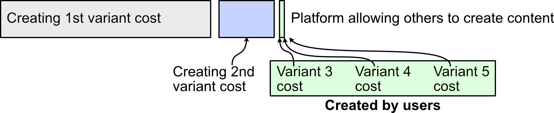 With software, the marginal costs of each duplicate unit of the already created product is $0. With platforms, the marginal costs of each new variant is also $0. The costs for the variants are borne by 3rd party creators. You just need to make sure you can capture a reasonable amount of the revenue.